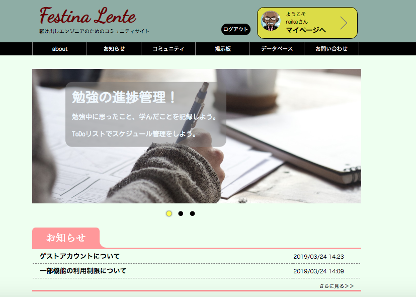 学習記録をtwitterにて行なっていたが、プログラミング関連の話題と、その他の話題が混在して分かりにくくなっていた為、受講生同士の交流の場があればと思い作成。
