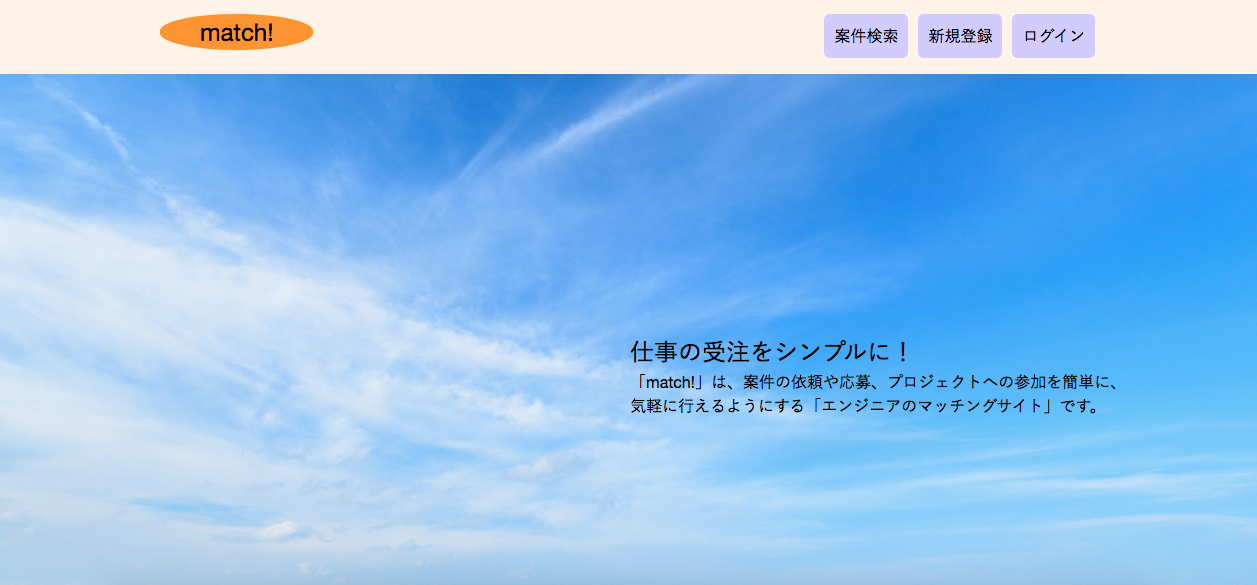 エンジニアの案件をもっと気軽に依頼・受注できるサービスがあればと考え作成。検索画面などはreactのajax通信を用い、ページの読み込み時間を短縮しています。